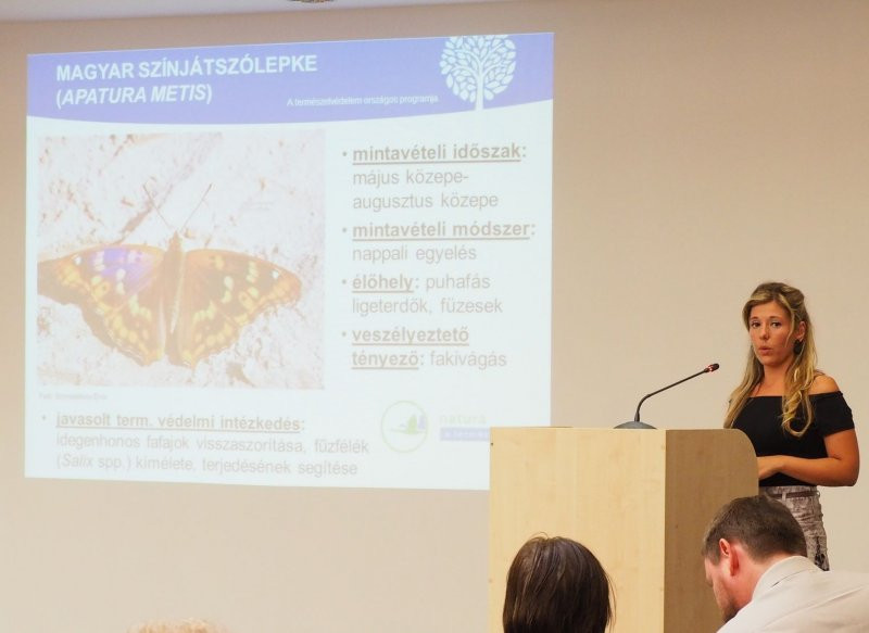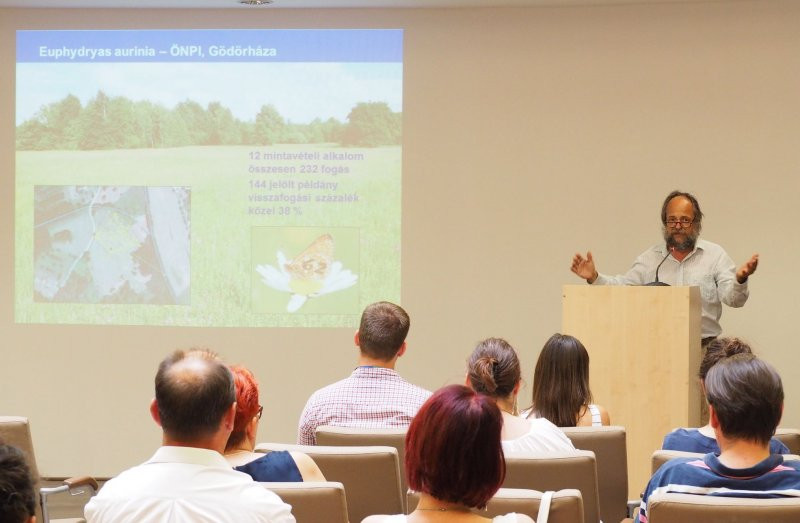 A konferencia délutáni programjában a rovarok kerültek fókuszba. Patalenszki Adrienn, a HNPI munkatársa prezentálta a több lepkefajt is érintő kutatási eredményeiket. A színjátszó lepke (Apatura metis) mintaterületi populációit stabilként értékelte, ugyanakkor azok egyik legfőbb veszélyeztető tényezője lehet a fakivágás. A keleti lápibaglyok (Arytrura musculus) számára az erdősülés és az idegenhonos inváziós fajok jelentenek veszélyt; a fajt a felmért 8 területből mindösszesen 3 területen sikerült megtalálni. A díszes tarkalepke (Hypodryas maturna) populációknál veszélyforrásként nevezte meg az akác terjedését, valamint az intenzív erdőművelést. A vizsgálatok a fokozottan védett sápadt szemeslepke (Lopinga achine) újabb állományait igazolták az Őrségben, ahol országos szinten is jelentős állománya él. A vérfű- és sötétaljú (Maculinea teleius és M. nausithous) hangyaboglárkák esetében most felfedezett kis egyedszámú és sérülékeny populációk fennmaradása érdekében az Őrségi Nemzeti Park Igazgatósággal együttműködve sikerült az érintett gazdálkodókkal a hagyássávok megtartását egyeztetni, a korábbi kaszálási gyakorlaton változtatni. A sztyeplepke (Paracossulus thrips) kutatásának legfontosabb módszertani újdonsága a bábbőr keresésének alkalmazása az állománynagyság becslésében.